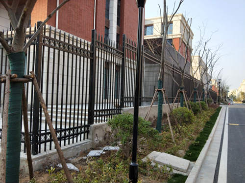 黑色四橫桿加裝飾圓環(huán)鋅鋼護(hù)欄網(wǎng)價格安裝完成